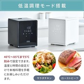 【おかずを調理できる「低温調理」モード搭載】低温調理モードでは、ごちそうメニューのローストビーフやダイエットメニューのサラダチキンなどを、材料を入れて温度と時間を設定するだけで簡単に調理できます。摂氏40度から85度の間を5度単位で設定でき、幅広い料理が楽しめます。