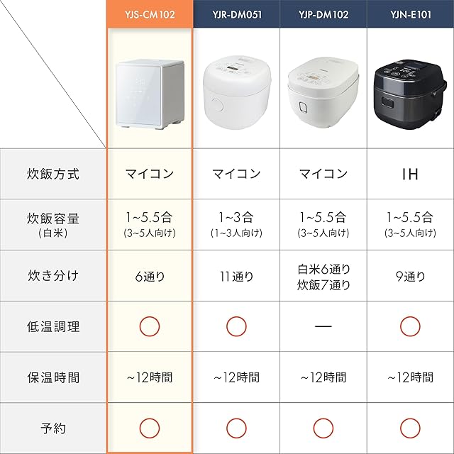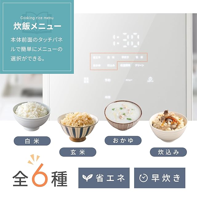 [山善] 炊飯器 5.5合 マイコン式 一人暮らし 二人暮らし 3.0mm厚釜 低温調理 炊き分けメニュー6種 保温 予約 玄米 クリーニングモード搭載 ホワイト YJS-CM102(W) | emishop315