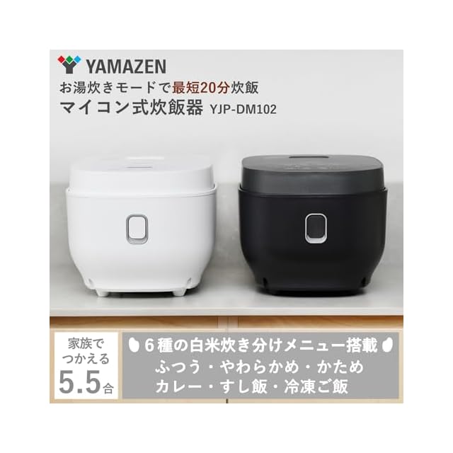 [山善] 炊飯器 一人暮らし 5.5合 マイコン式 二人暮らし 玄米 雑穀米 炊き分け13種 最短20分炊飯 「メニューに合わせた白米炊き分け機能付き」 クリーンモード搭載 予約 保温 ホワイト YJP-DM102(W) | emishop315