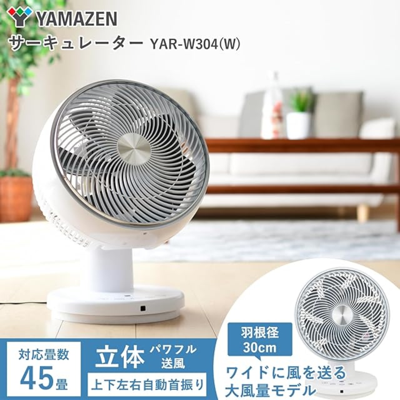 商品名:[山善] サーキュレーター 静音 45畳 上下左右自動首振り 風量3段階調節 切タイマー リモコン付き お手入れ簡単 パワフル送風 ホワイト YAR-W304(W)