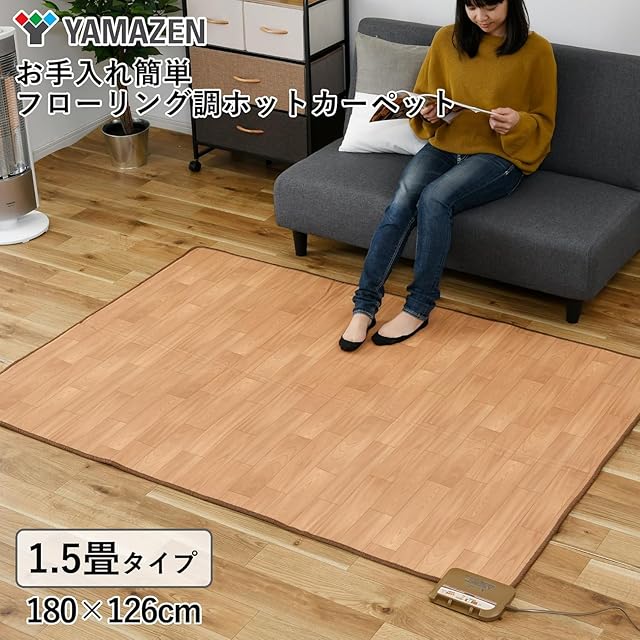 【冬場の強い味方】寒い季節にこれ1台、冬場に冷える足元をあたためてくれる、まるでフローリングのようなホットカーペット。ラグサイズの1.5畳タイプ。