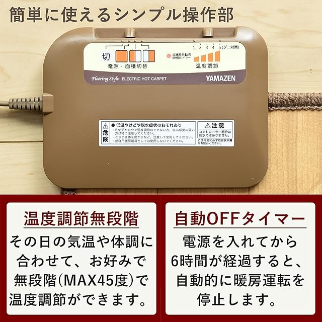 商品名:[山善] ホットカーペット フローリング調 電気カーペット 1.5畳 (126cm×180cm) 防水加工 暖房面切替 温度調節5段階 ダニ対策機能 6時間オートオフタイマー ライトブラウン YZC-169FL(LBR)