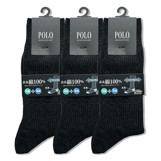 商品名:[グンゼ] ソックス <3足組> ビジネス靴下 POLO BCS ポロビーシーエス カジュアルリブワンポイント メンズ PL0125 モクチャコール 25~27cm