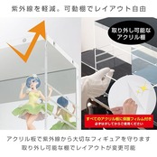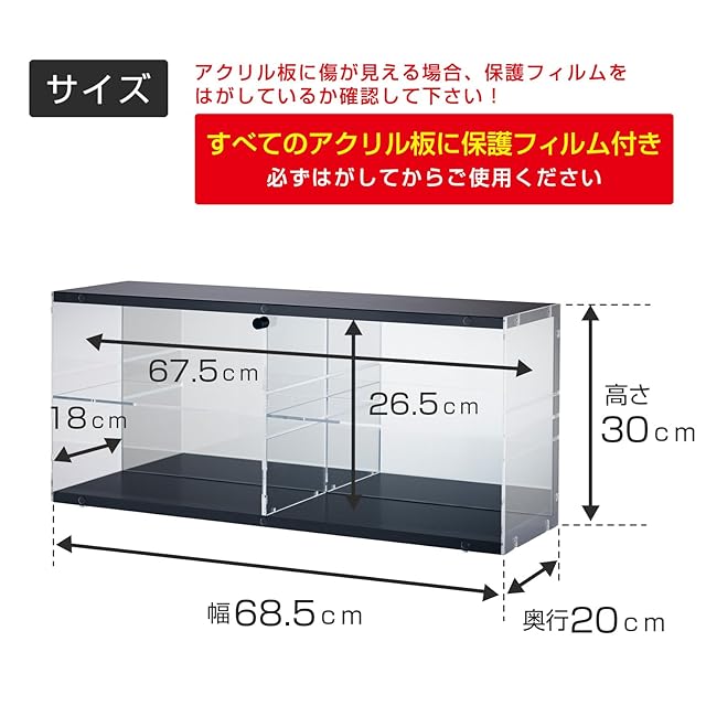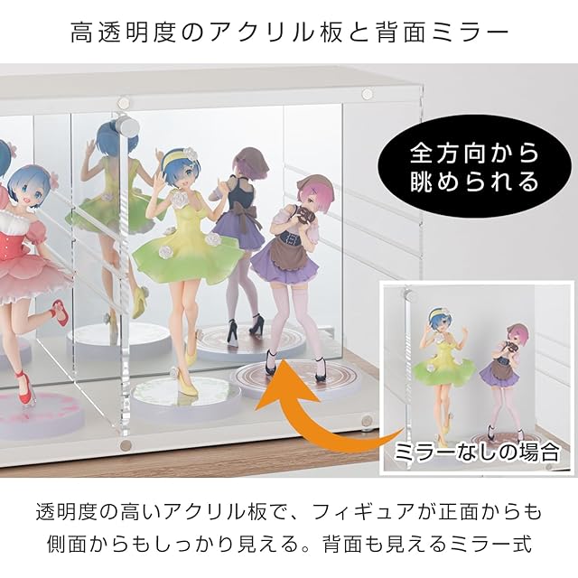 部材:天板・底板(MDF+メラミンシート)/背面ミラー仕様(MDF+メラミンシート)/側板(4mmアクリル)/縦板(8mmアクリル)/扉部(3mmアクリル)/可動棚板(4mmアクリル)