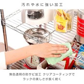 素材:シェルフ(棚)・ポール:スチール(クロームメッキ)、スリーブ:ABS樹脂