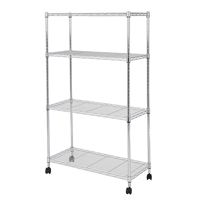 ドウシシャ メタルルミナスラック キャスター付き スチールラック幅75 4段 EL19-12754 軽量で組立簡単工具いらず 幅74.5×奥行き34.5×高さ124.5cm 棚板耐荷重80kg 全体耐荷重320kg 頑丈 防錆加工 ポール径19mmパーツ対応 キッチンラック 隙間収納 | emishop315