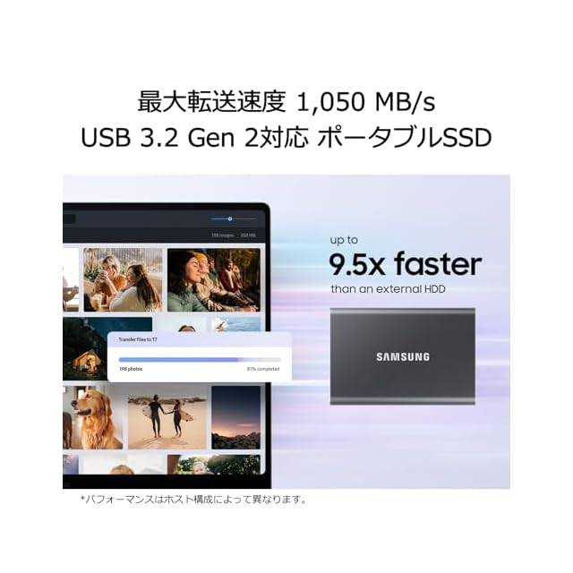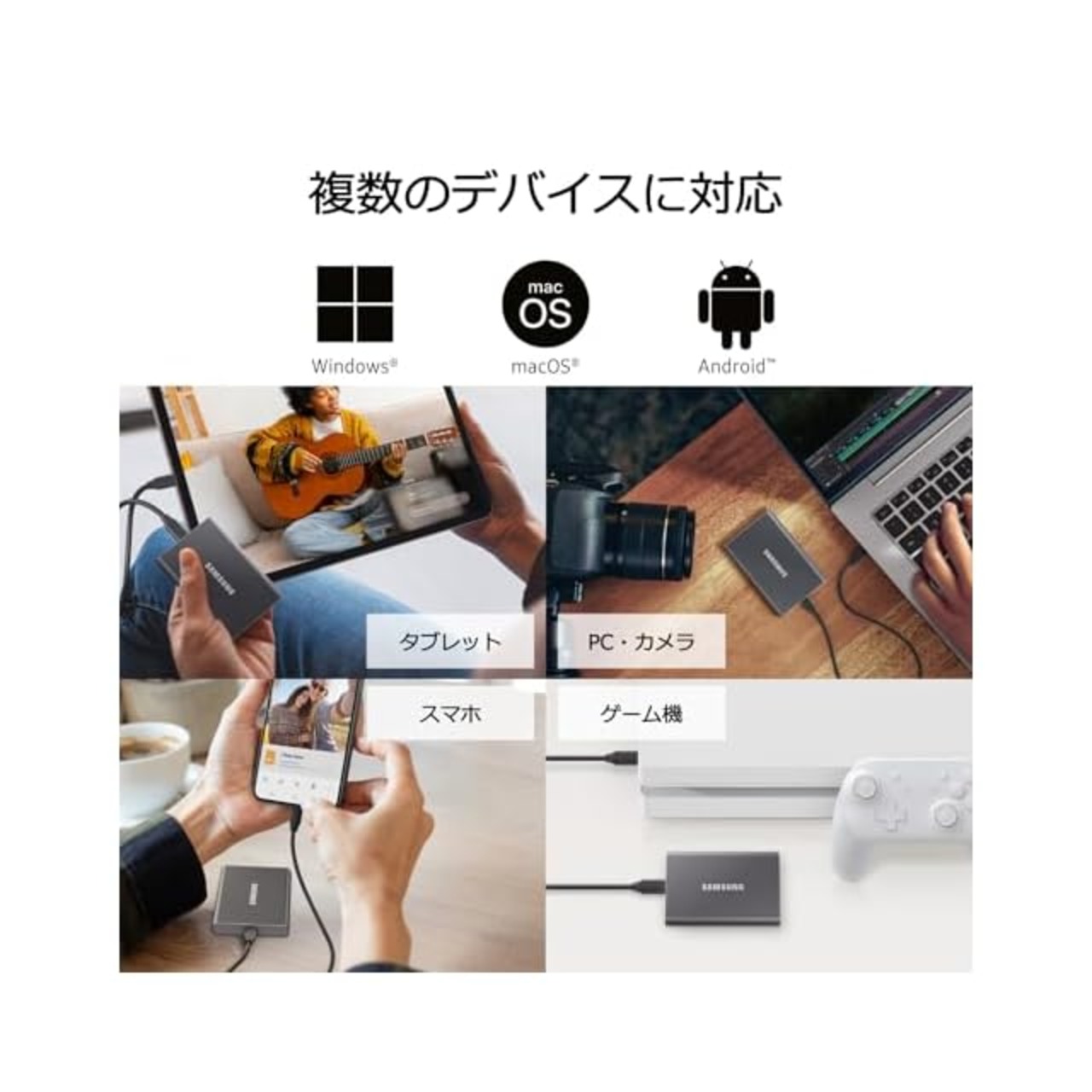 商品名:Samsung T7 2TB 外付けSSD 最大転送速度1,050MB/秒 USB3.2 Gen2(10Gbps, Type-C)グレー iPhone15シリーズ動作確認済み MU-PC2T0T/EC 国内正規品