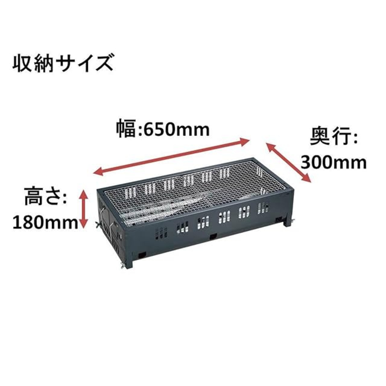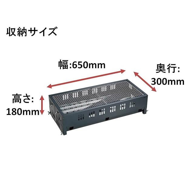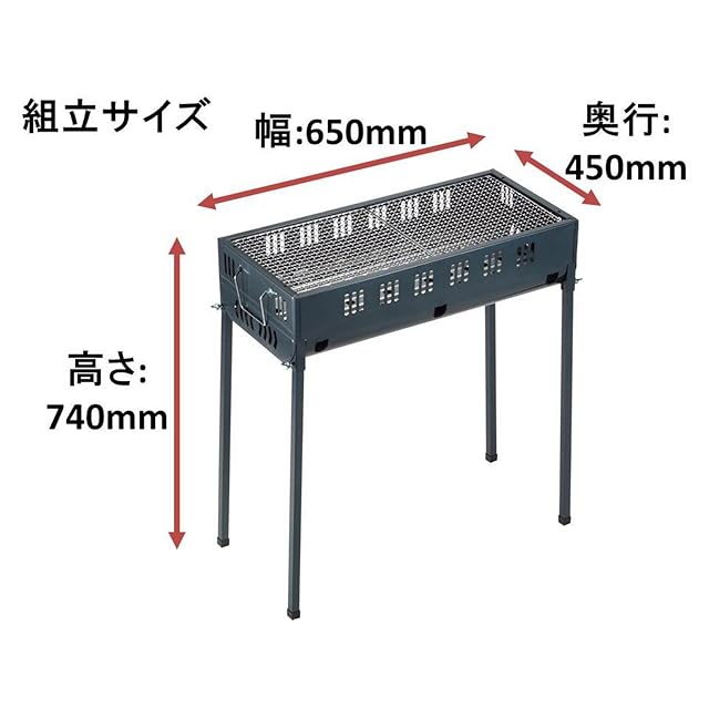 ●メーカー:パール金属<br>●型番:M-6444<br>●商品名:オービット バーベキューコンロ650<br>●組立サイズ(mm):約幅650×奥行450×高さ740<br>●収納サイズ(mm):約幅650×奥行300×高さ180<br>●重量(kg):約4.5<br>●材質:<br>・本体・脚:鉄(メラミン樹脂塗装)<br>・バーベキュー網・ハンドル:鉄(クロムめっき)<br>・目皿:亜鉛めっき鋼板<br>●原産国:中国
