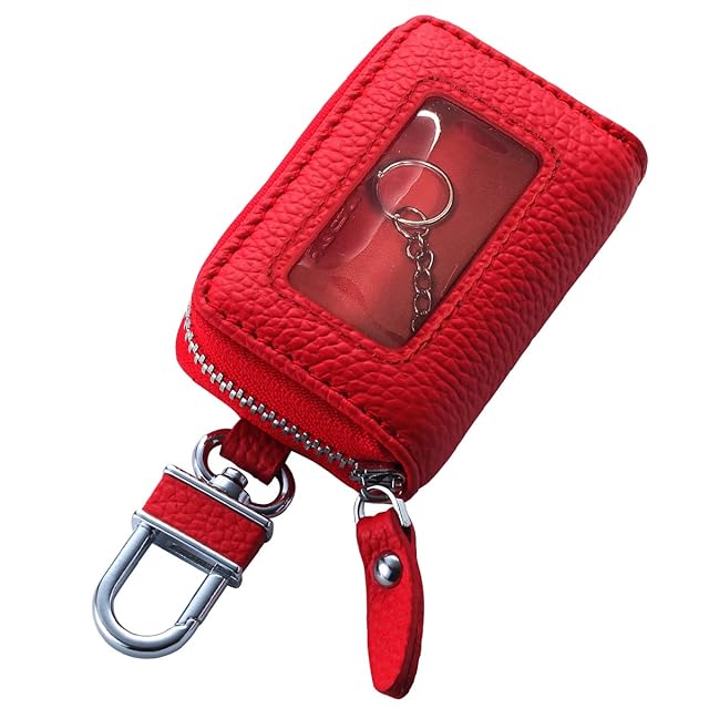 商品名:スマートキーケース クリア窓付き レッド 本革 キーケース ASK-CM006