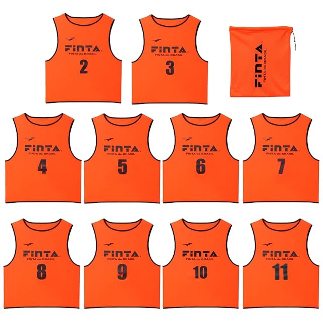 サッカーを愛して止まない国ブラジル発の人気サッカーブランド・FINTAのサッカー、フットサル用のビブス、ゲームベスト。ゼッケンは2〜11の通し番号。下に着たウェアの色が透けにくい特殊なメッシュ素材を使用。耐久性が高く、洗濯をしてもほつれや色落ちがしづらいので、長く使用できます。