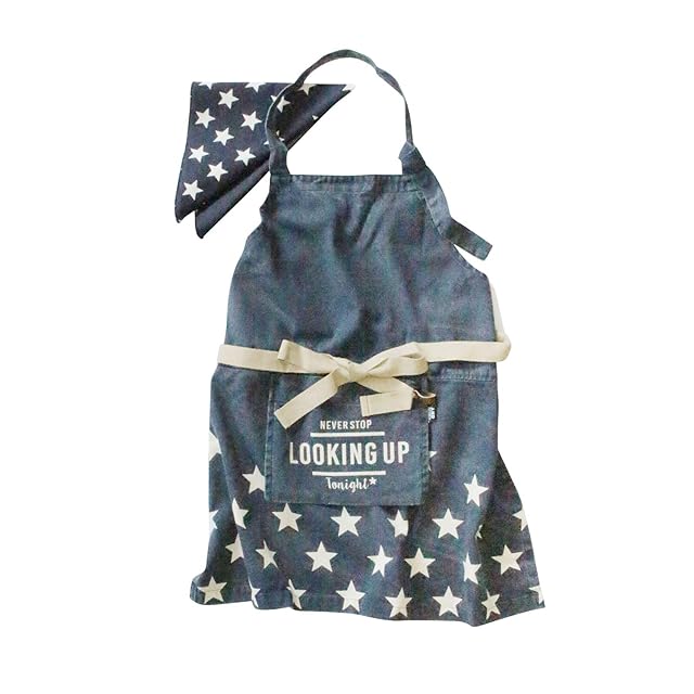 アンドパッカブル 「 成長に合わせて丈を調整できる 」 子供 エプロン 三角巾セット 身長100-160対応 青スター ブルー 丈夫 洗濯機可 89578