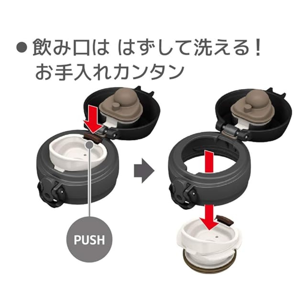 素材・材質:内びん/ステンレス鋼、胴部/ステンレス鋼(アクリル樹脂塗装)、フタ・せん本体・飲み口/ポリプロピレン、フタパッキン/シリコーンゴム・シリコーンゴム