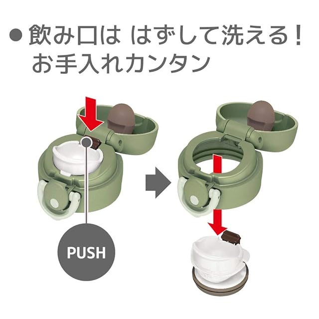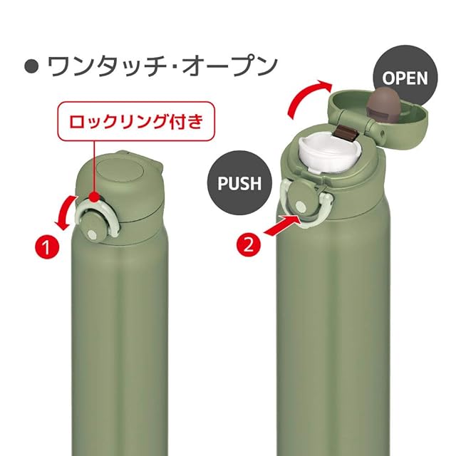 素材・材質:内びん/ステンレス鋼、胴部/ステンレス鋼(アクリル樹脂塗装)、フタカバー/ABS樹脂、フタ・せん本体/ポリプロピレン、飲み口/ポリプロピレン、フタパッキン/シリコーンゴム、せんパッキン/シリコーンゴム