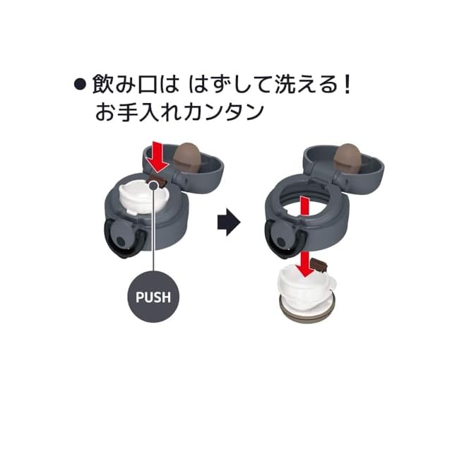 素材・材質:内びん/ステンレス鋼、胴部/ステンレス鋼(アクリル樹脂塗装)、フタカバー/ABS樹脂、フタ・せん本体/ポリプロピレン、飲み口/ポリプロピレン、フタパッキン/シリコーンゴム、せんパッキン/シリコーンゴム