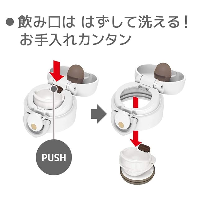 素材・材質:内びん/ステンレス鋼、胴部/ステンレス鋼(アクリル樹脂塗装)、フタカバー/ABS樹脂、フタ・せん本体/ポリプロピレン、飲み口/ポリプロピレン、フタパッキン/シリコーンゴム、せんパッキン/シリコーンゴム