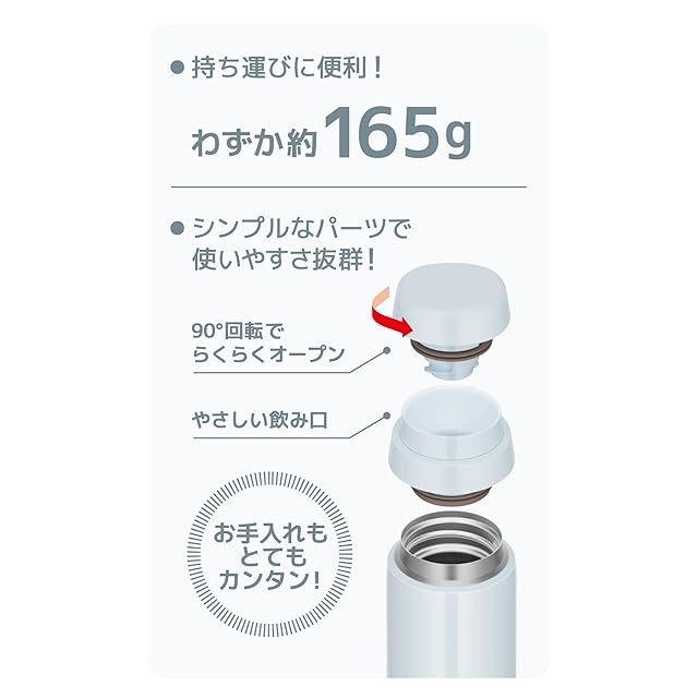 内びん:ステンレス鋼 / 胴部:ステンレス鋼(アクリル樹脂塗装) / フタ:ポリプロピレン(発泡ポリプロピレン内蔵) / せん本体:ポリプロピレン / フタパッキン・せんパッキン:シリコーンゴム