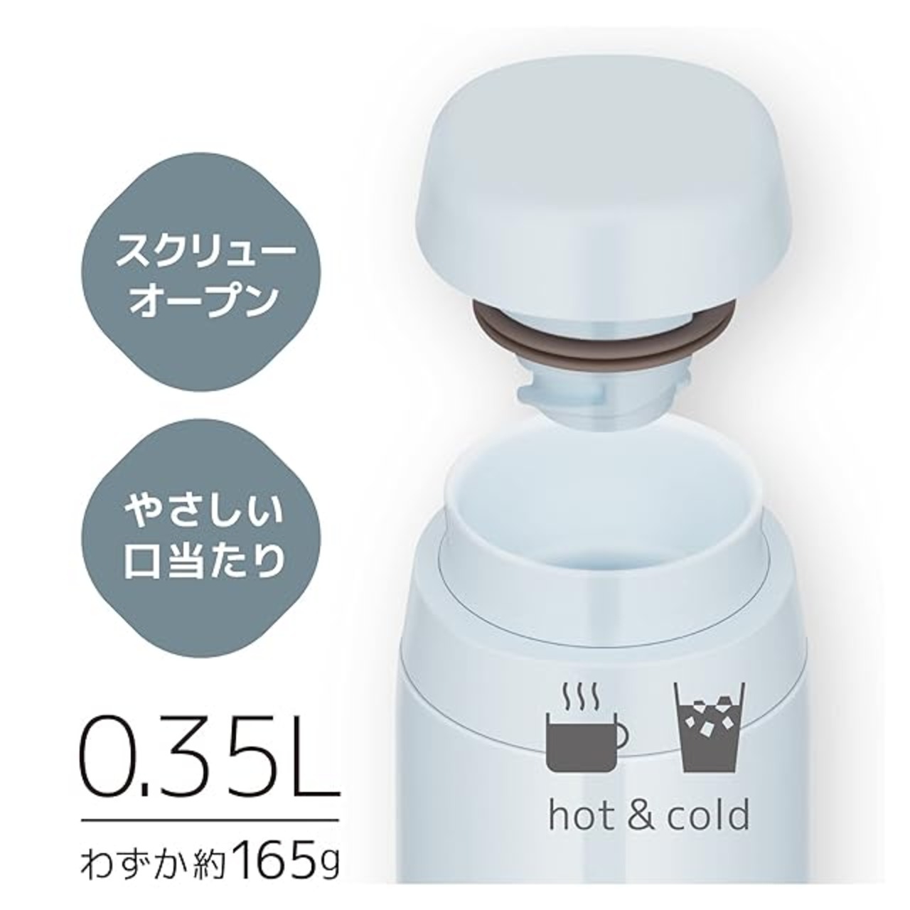 サイズ(約):幅6×奥行6×高さ19.5cm、本体重量(約):200g、容量:350ml