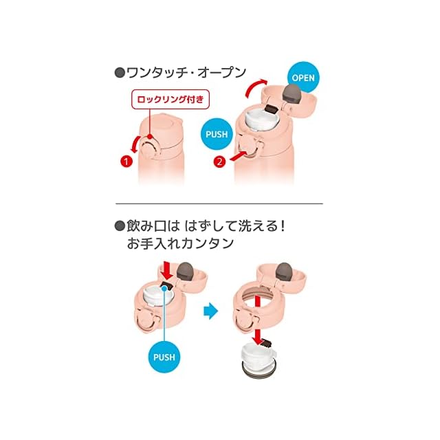素材・材質:内びん:ステンレス鋼 / 胴部:ステンレス鋼(アクリル樹脂塗装) / フタカバー:ABS樹脂 / フタ・せん本体・飲み口:ポリプロピレン / フタパッキン・せんパッキン:シリコーンゴム