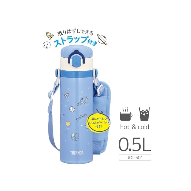 商品名:サーモス 水筒 真空断熱キッズケータイマグ 500ml サックスブルー 取りはずしできるストラップ 肩に優しいショルダーパット付き 子供用 通園通学 JOI-501 SAX