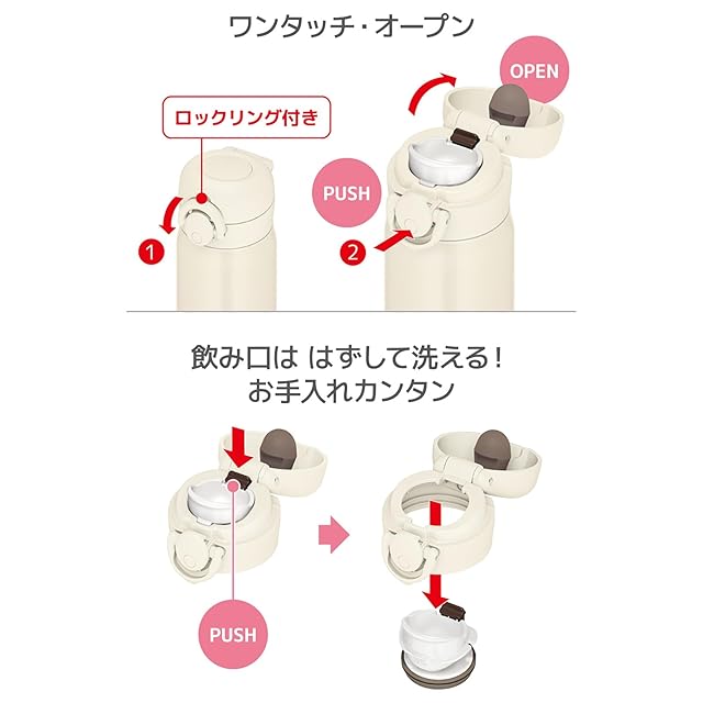 商品名:サーモス 水筒 真空断熱ケータイマグ 500ml アイボリーピンク 飲み口外せてお手入れ簡単 軽量タイプ ワンタッチオープン ステンレス ボトル 保温保冷 JNR-503LTD IV-P