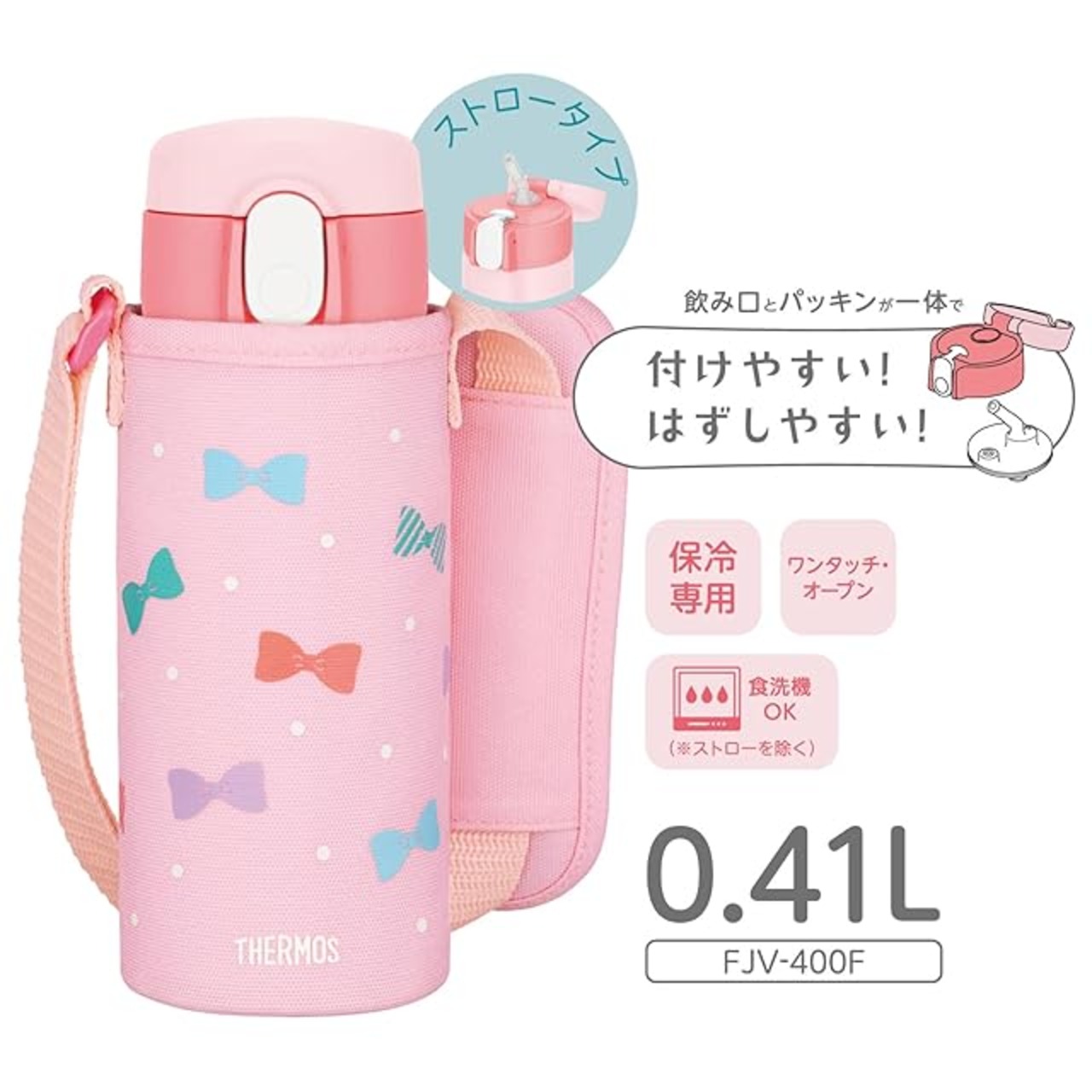 商品名:サーモス 水筒 真空断熱ストローボトル 410ml ピンク 子供用 通園通学 保冷専用 FJV-400F P