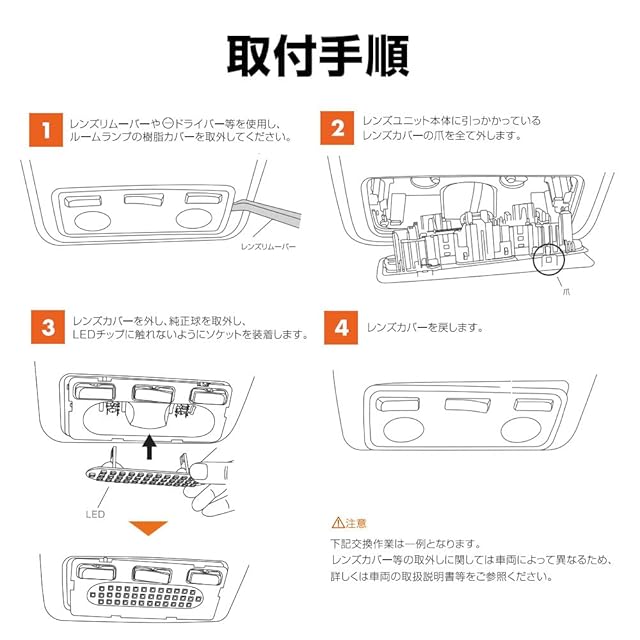 【専用工具付きで簡単交換】車体側のルームランプレンズを取り外すための専用工具(内張り剥がし)が付属しているため、取り外しづらいランプレンズも簡単に取ることができ、純正ランプと交換するだけの楽々交換。作業時間も短縮し、LED初心者さんをしっかりサポートします。