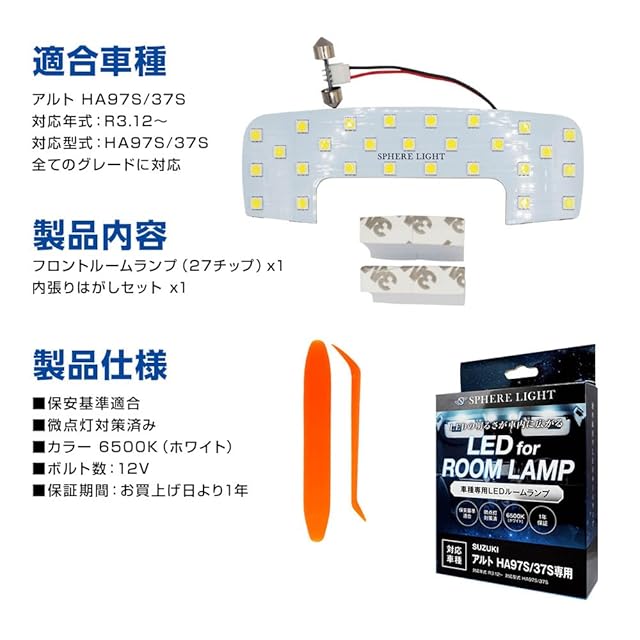 商品名:スフィアライト アルト LED ルームランプ セット ホワイト HA97S HA37S 専用設計 室内灯 取付 簡単 微点灯 点滅 対策 SPHERELIGHT SLRM-50