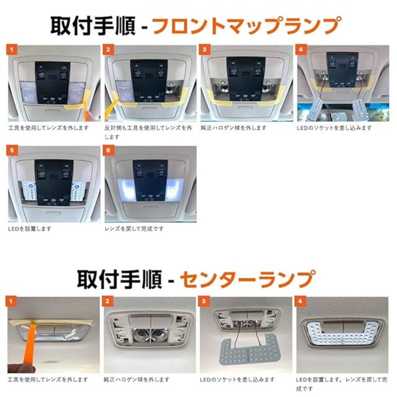 【セット内容】フロントランプ(14チップ)×2、センターランプ(46チップ)×1、リアセンターランプ(42チップ)×1、バニティランプ(6チップ)×2、内張りはがしセット×1 ※TX"Lパッケージ" (5人乗り)以外のグレードは品番が異なります。※型式GDJ/TRJ15#Wにて年式が H21.8〜H29.8 の場合は、センターランプ・リアセンターランプの形状が現車と一致することを事前にご確認いただきお買い求めください。