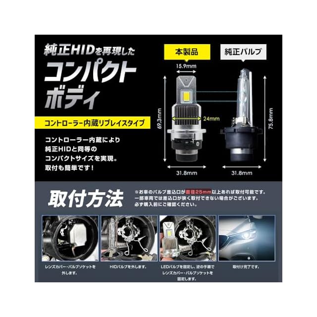 商品名:スフィアライト 純正HID用 LED ヘッドライト D2R 6000K ホワイト 11000lm 12V 24V 兼用 シェード 付き 車検対応 ポン付け バルブタイプ 配線レス 汎用 SPHERELIGHT SLGAD2R060