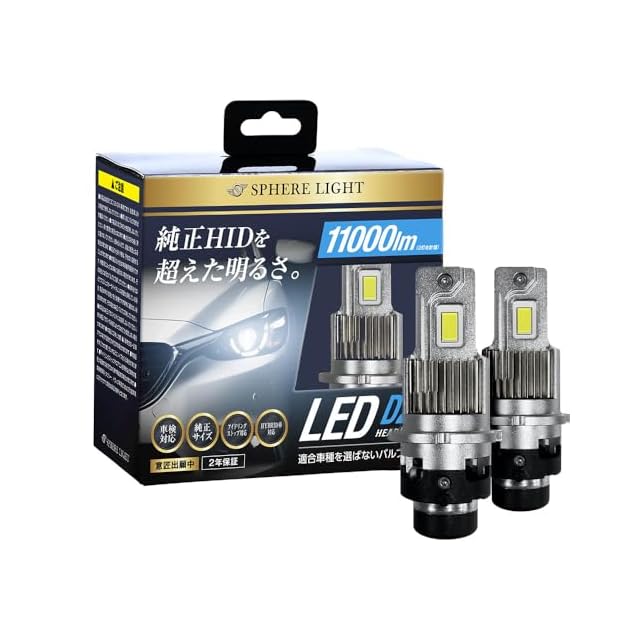 スフィアライト 純正HID用 LED ヘッドライト D2R 6000K ホワイト 11000lm 12V 24V 兼用 シェード 付き 車検対応 ポン付け バルブタイプ 配線レス 汎用 SPHERELIGHT SLGAD2R060 | emishop315