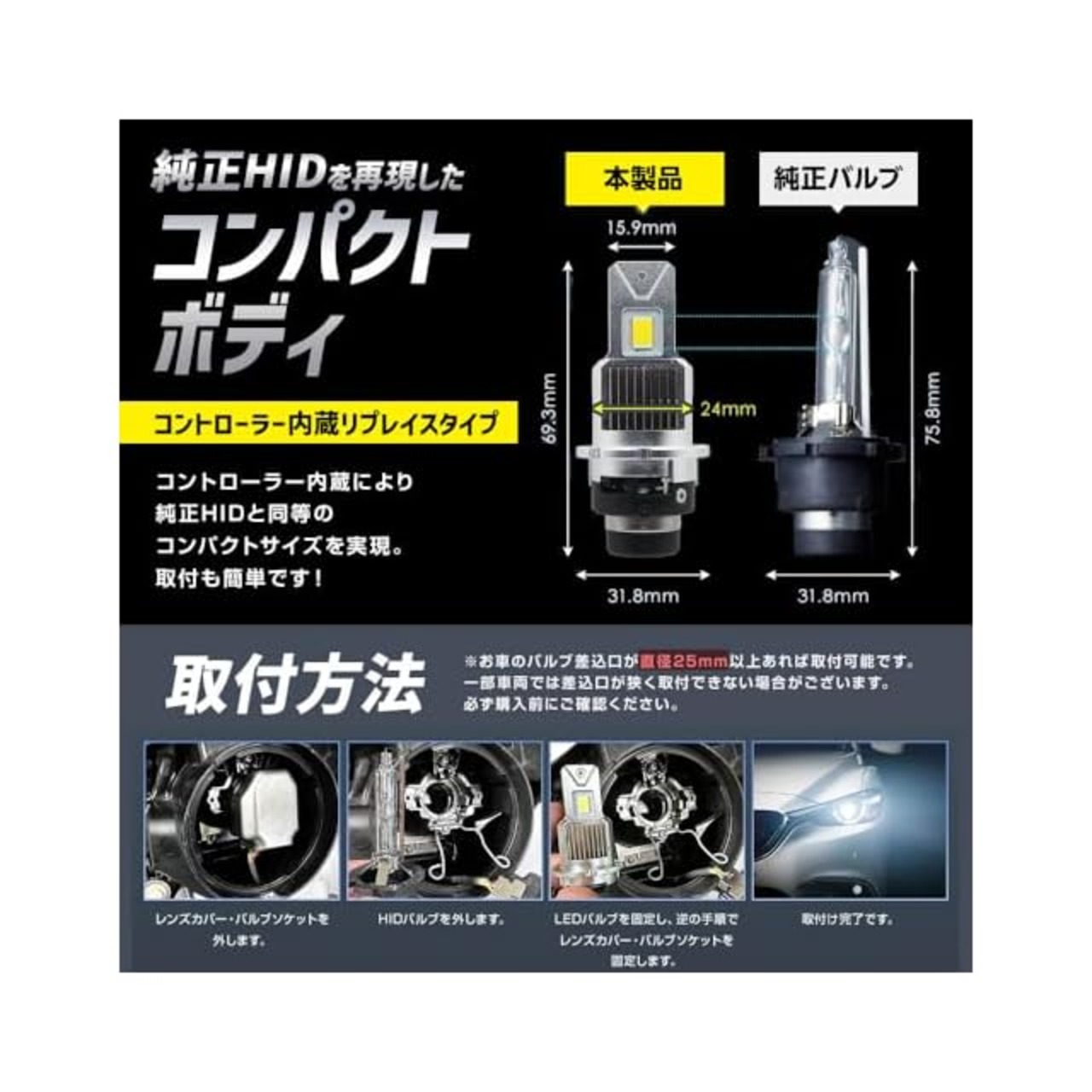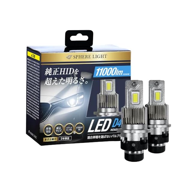 スフィアライト 純正HID用 LED ヘッドライト D4R 6000K ホワイト 8600lm 12V 24V 兼用 シェード 付き 車検対応 ポン付け バルブタイプ 配線レス 汎用 SPHERELIGHT SLGAD4R060 | emishop315