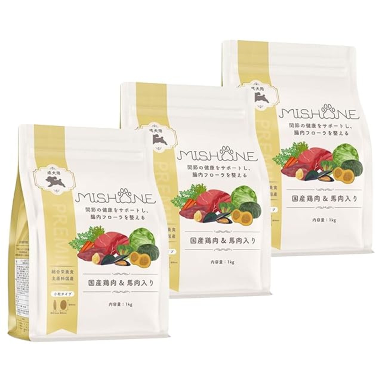 商品名:ミシュワン ドッグフード 成犬用(国産鶏肉&馬肉)1kg×3個 【獣医師監修】 無添加 グルテンフリー 総合栄養食