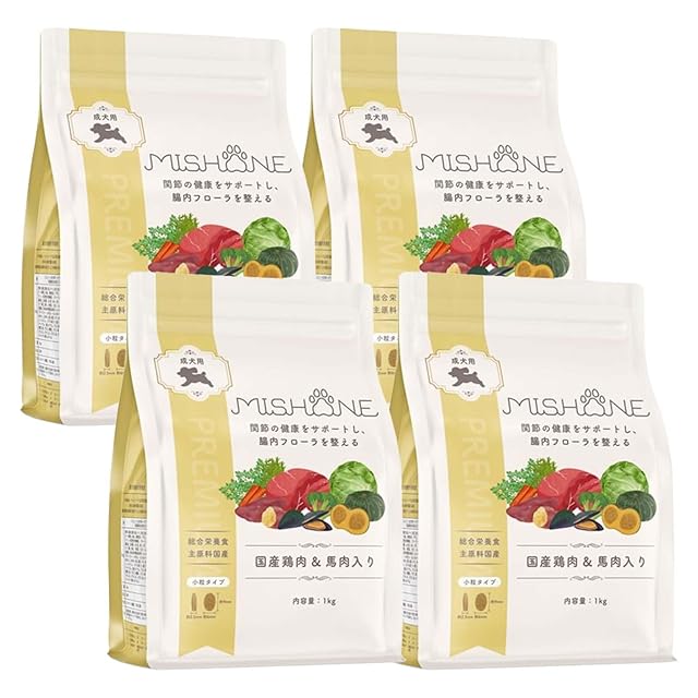 商品名:ミシュワン ドッグフード 成犬用(国産鶏肉&馬肉)1kg×4個 【獣医師監修】 無添加 グルテンフリー 総合栄養食