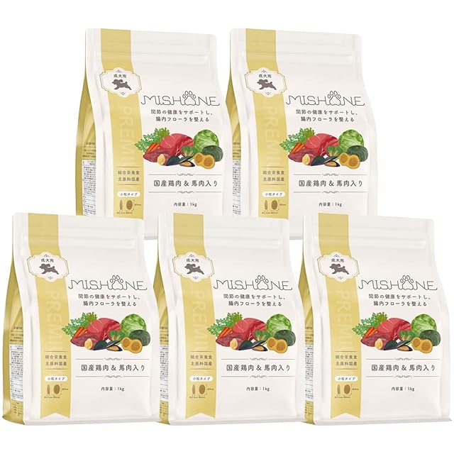 商品名:ミシュワン ドッグフード 成犬用(国産鶏肉&馬肉)1kg×5個 【獣医師監修】 無添加 グルテンフリー 総合栄養食