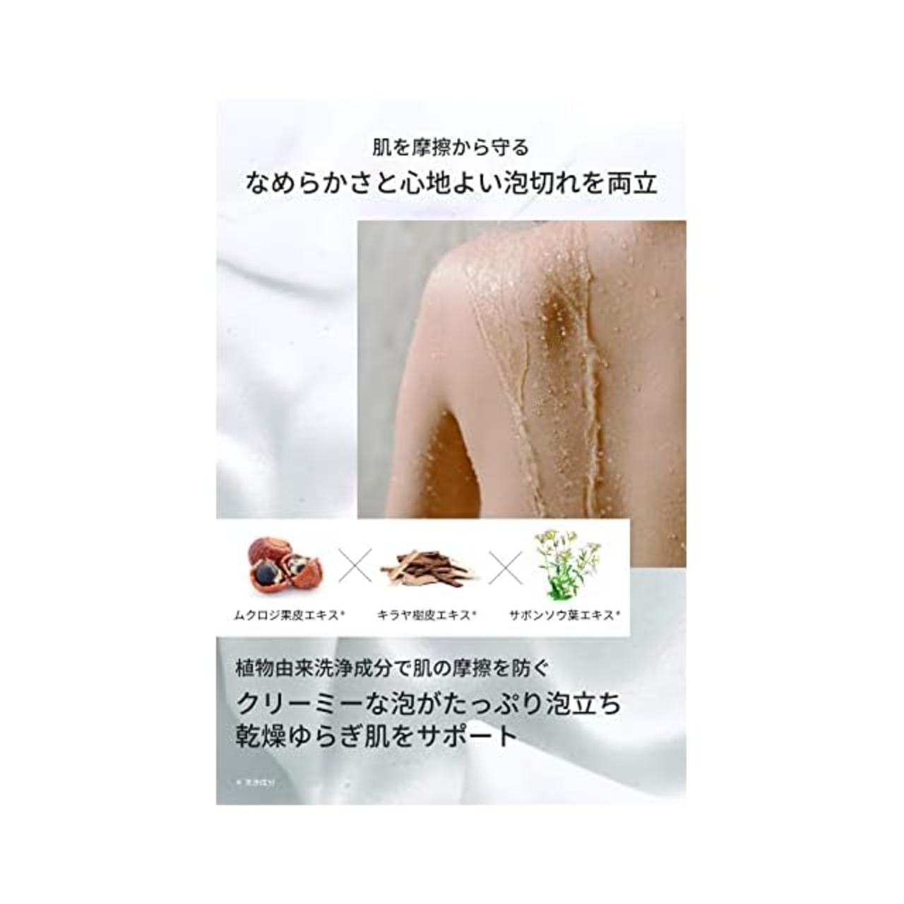 石けん+アミノ酸系洗浄成分の独自の配合バランスで、さっぱり心地よい泡切れとしっとり潤い感を実現