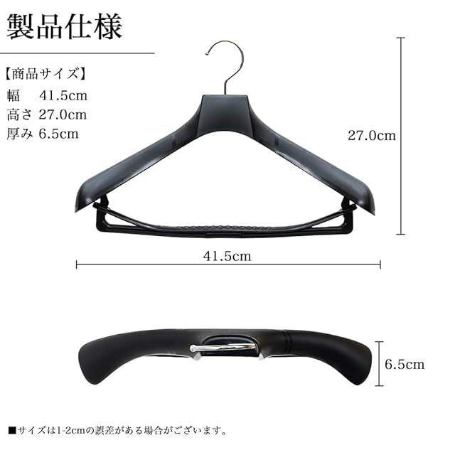 【商品サイズ】幅41.5㎝×高さ24.0㎝×厚み6.5㎝【サイズ対象目安】男性Mサイズと女性Lサイズの服は当製品のMサイズのハンガーが最適。男性Lサイズと女性LLサイズの服は当製品のLサイズのハンガーが最適。