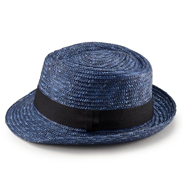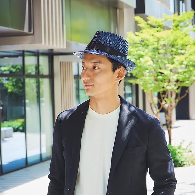 (田中帽子) ノア 日本製 麦わら 中折れ ハット / 9-10mm (麦わら帽子 メンズ 大きいサイズ ストロー 紫外線 uv 対策 日焼け防止 日よけ 春日部 ギフト 誕生日 男女兼用 男性 女性 父の日プレゼント 人気商品) (M(57.5cm), ネイビーブルー) UKH005