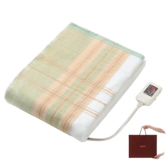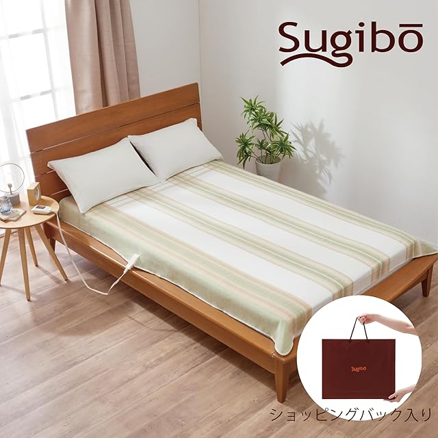 Sugibo(スギボー) 電気毛布 (大きめサイズ) クリスマスやお誕生日のプレゼントに最適!( ショッピングバックに入れてお届けします ) 日本製 洗える 切り忘れ防止タイマー付き 190×140㎝ 掛敷兼用ワイドタイプ SB22KW27(G) グリーン