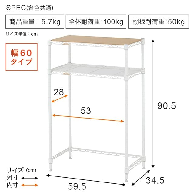 耐荷重:全体:100kg/棚板1枚あたり:50kg