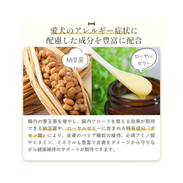 鶏肉アレルギーに配慮し、肉類不使用、生魚100%を使用しています。 お魚好きのわんちゃんはもちろん、アレルギー体質のわんちゃんにも嬉しい栄養素や成分を配合した逸品です。