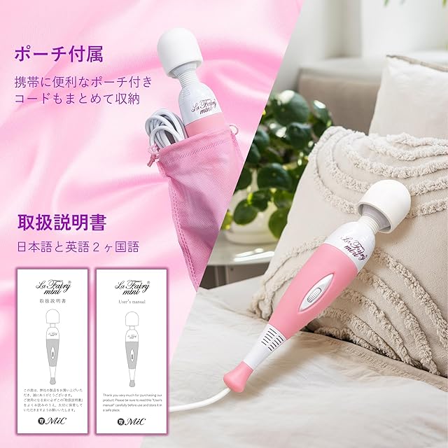 シリーズ販売累計 500万本突破!不朽の名作フェアリーミニが、発売から20年の節目に大改良リニューアル!<br> 電マの代名詞「フェアリー」のシリーズNo.1人気モデルが、「ラ・フェアリーミニ」となってさらにパワーアップ!<br> 扱いやすい直径45mmの小型ヘッドはそのままに、滑らかなシリコン製にすることでお手入れがしやすくなりました。<br> モーターは最高毎分10,500回転に大幅アップ。繊細から力強い振動まで可能にする独自の高性能モーター内蔵。クーリングファンを搭載し、長時間でも熱くなりにくい設計になりました。<br> ボディにも手触りの良いシリコン加工を採用。細身のボディは手の小さめな方でも楽に使い続けられます。<br> 電源は、希望の多かった2.5mのロングコードコンセントを採用。幅広い場所でのご使用が可能となりました。<br> 携帯に便利なポーチ付きで、ご使用後はコードもまとめて収納できます。<br> さらに、日本語と英語2ヶ国語の取扱説明書付き。初めてご購入の方も安心です。<br> 快適なリフレッシュケアにも最適。ぜひ、新たなるフェアリーをお楽しみください。