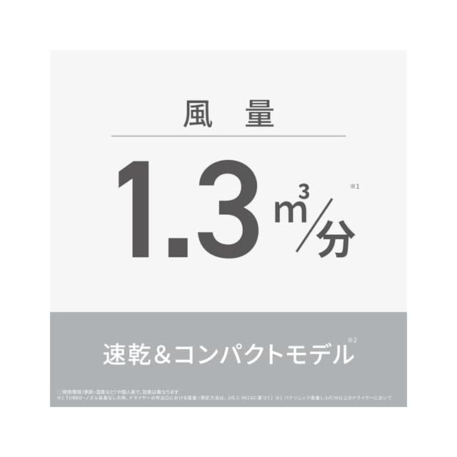 コンパクトでも風量1.3㎥/分で、パワフルドライ。