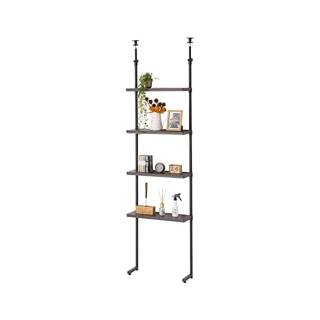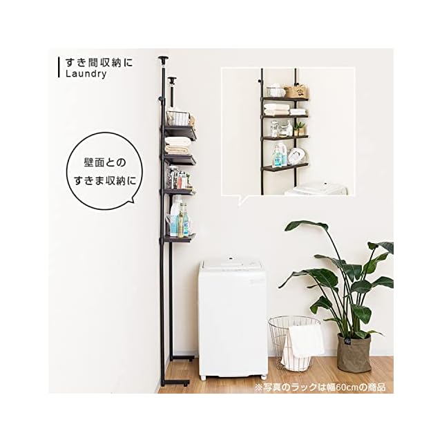 ドウシシャ ルミナス ノワール 突っ張り ラック つっぱり 棚 4段 幅60 壁面収納 ウォールラック 簡単取付 段差対応 有孔ボード フック付き 穴あけ不要 壁を傷つけない 木製棚板 スリム 黒 ブラック 全体耐荷重20kg NO60-4HT | emishop315