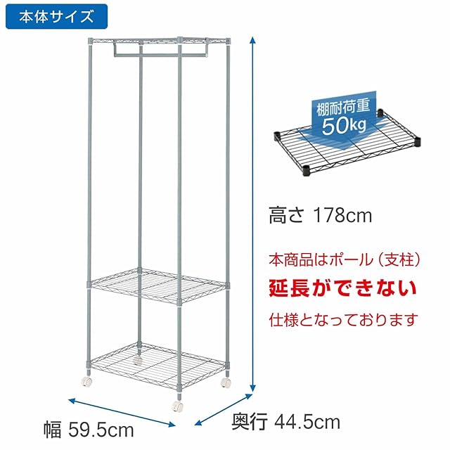 ドウシシャ ルミナス互換 スリム ハンガーラック ワードローブ コンパクト 幅60 お部屋に馴染む おしゃれ グレー スチール製 全体耐荷重150kg 頑丈 大容量 棚付き キャスター付き 幅59.5×奥行44.5×高さ178cm 19-60183GY | emishop315