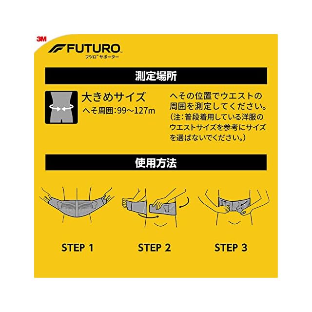 サイズ:大きめ(へそ周囲:99~127cm)、適用部位:腰