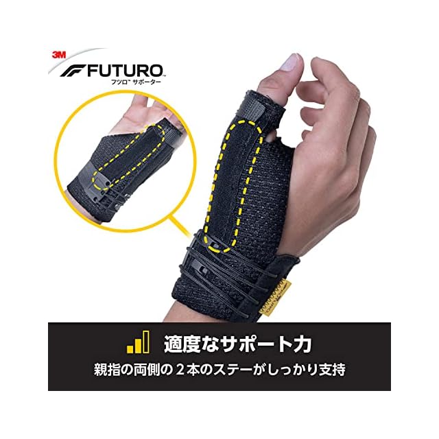 サポートレベル:中程度・固定、しっかり保護用(痛みのある親指をステー(支持材)でしっかり固定・サポート)