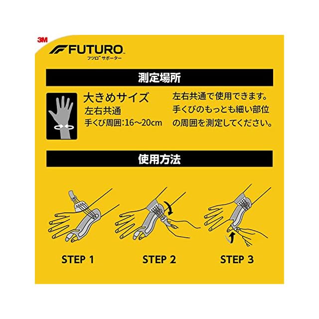 サイズ:大きめ(手くび周囲:16~20cm)、適用部位:親指(左右共通)