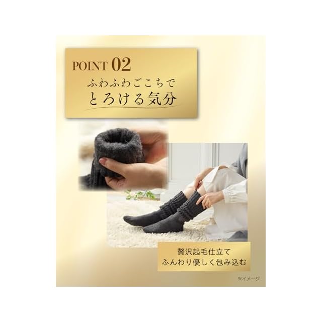 【贅沢起毛仕立て】ふわふわな裏側起毛で、足もとをふんわり優しく包み込みます。寒い季節のおうち時間を、極上のひとときに。