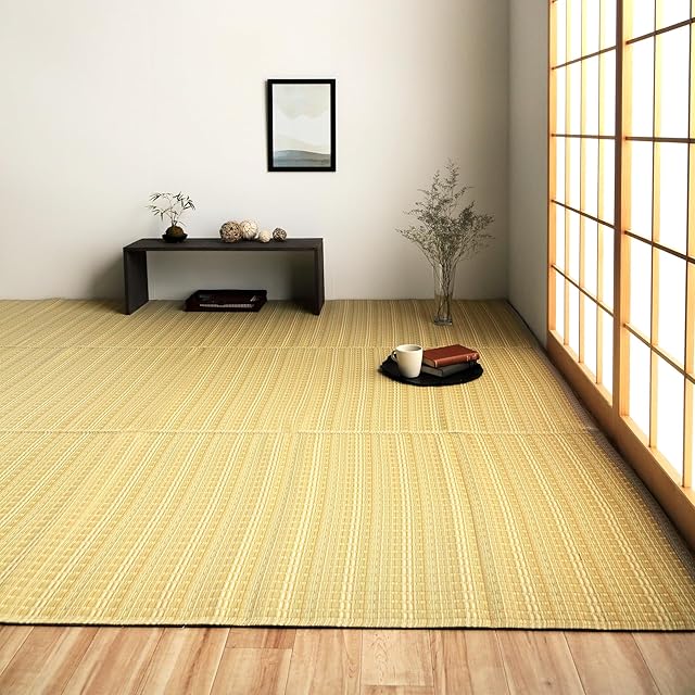 イケヒコ 『バルカン』 肌触りの良い国産 畳 マット 江戸間8畳 ベージュ 傷がつきにくく引っ掻き傷にも強い丈夫なPP素材で作ったカーペット 水こぼしや汚れに強くてお手入れ簡単な洗えるラグ 夏は肌に密着しにくくベタつかない キャンプ・花見などアウトドアでも活躍 畳上敷き 畳 へこみ 防止ラグ 防音マット フロアマット カーペット 8畳 日本製 洗える #2102308 | emishop315