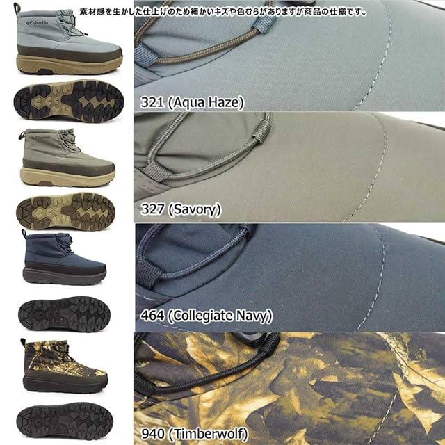 【特徴】 ・コロンビア独自の熱反射保温機能「オムニヒートリフレクティブ」 ・ウォータープルーフ ・汎用性の高いショート丈 ・足首までしっかりとフィットするバンジーコード仕様 ・グローブをはめたままでも調整できるアジャスター付き ・クッション性のあるミッドソール ・真冬のアウトドアシーンをはじめ、タウンユースでも活躍 ・軽量性と防滑性のバランスの取れたアウトソール設計 ・真冬のアウトドアシーン、タウンユースとマルチに活躍